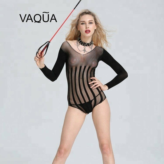 Sexy fine striped mesh Fishnet body stocking lingerie full sleeves one size 8-18
