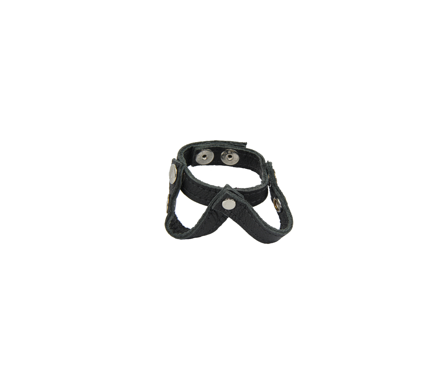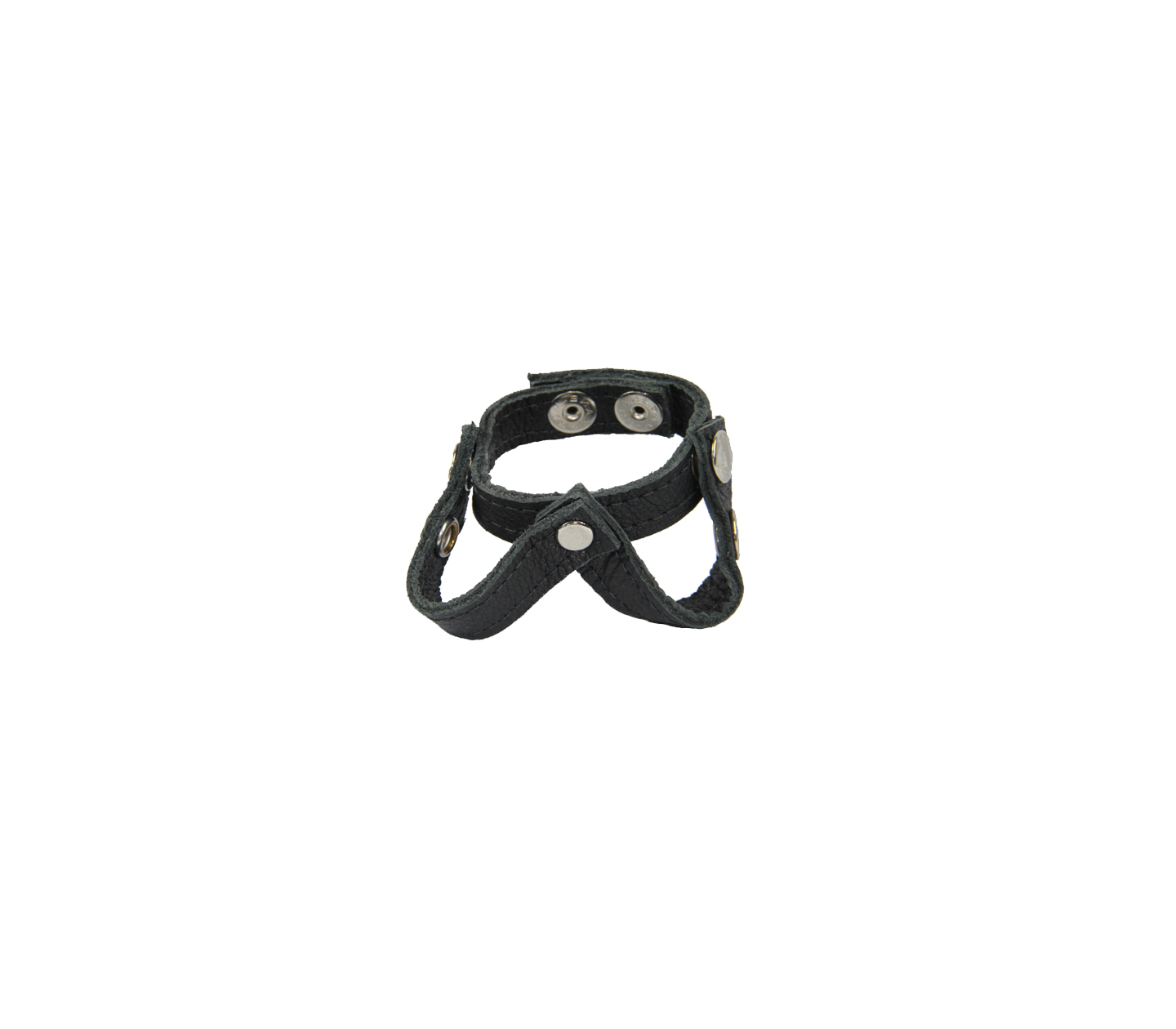 Leather cross over cock strap and ball divider with single stud adjustments. Made in Australia.