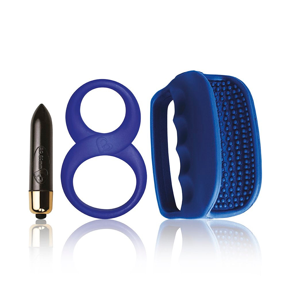 Ultimate pleasure is just around the corner with the Boys will be boys set. Consisting of an RO-80mm Bullet, an 8 Ball cock and ball ring and a hand solo pleasure stroking masturbator sleeve.