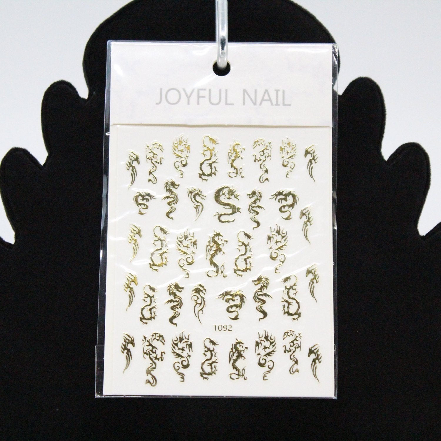 Now available at DragonZone Australia is our beauty collection. These Gold Coloured Chinese Tribal Dragon Stickers are ideal for use on your finger nails when having a manicure. Perfect to apply yourself or have your manicurist apply them for you when you next get your nails done. Features: Enhance your fingernails Sheet Size: Approximately 13cm high x 8cm wide Stickers per Sheet: 37 stickers Colours are shiny gold.colours Sticker Size: Approximately 1.5cm high Acrylic Fingernails shown in images are not included! How do you apply the Tribal Chinese Dragon Finger Nail Stickers? Clean the finger nail surface. Coat the finger nail with nail polish Use tweezers to clip the Finger Nail Sticker Put the Finger Nail Sticker on the nail lightly Press for 10 seconds Coat the finger nail with nail polish again Your nail is finished when dry NOTE: No soaking is required to use the Dragon Finger Nail Stickers. WARNING: Potential for choking hazard - Small parts, not suitable for children under 3 years.