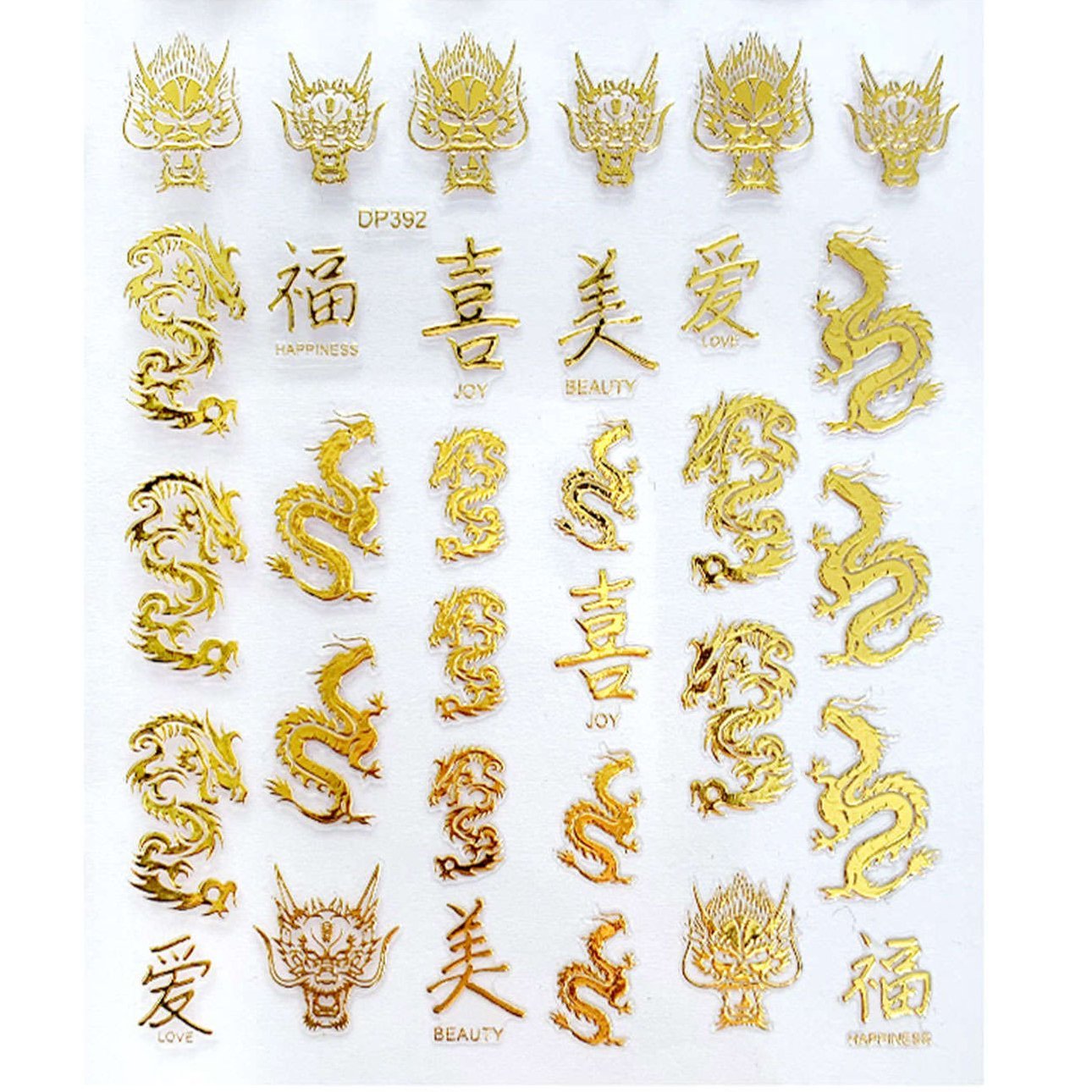 Now available at DragonZone Australia is our beauty collection. These Gold Coloured Chinese Tribal Dragon Stickers are ideal for use on your finger nails when having a manicure. Perfect to apply yourself or have your manicurist apply them for you when you next get your nails done. Features: Enhance your fingernails Sheet Size: Approximately 13cm high x 8cm wide Stickers per Sheet: 32 stickers Colours are shiny gold colours Sticker Size: Approximately 1.5cm high. Sizes Vary Acrylic Fingernails shown in images are not included! How do you apply the Tribal Chinese Dragon Finger Nail Stickers? Clean the finger nail surface. Coat the finger nail with nail polish Use tweezers to clip the Finger Nail Sticker Put the Finger Nail Sticker on the nail lightly Press for 10 seconds Coat the finger nail with nail polish again Your nail is finished when dry NOTE: No soaking is required to use the Dragon Finger Nail Stickers. WARNING: Potential for choking hazard - Small parts, not suitable for children under 3 years.