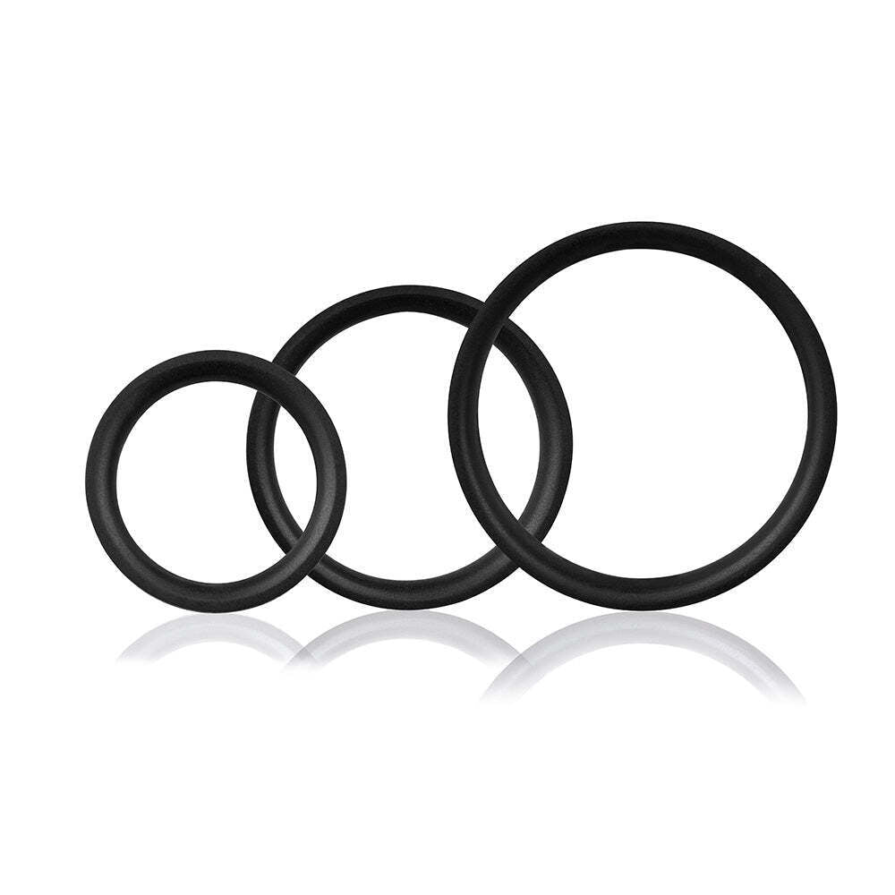 Explore the exciting world of cock rings with the RingO Pro x3 variety pack- three sizes for three different sensations, all made of durable and body-safe True Silicone(R). These dependable cock rings are soft, smooth, and stretchy to assure a perfect fit and feature a wide band with a rounded interior for a more comfortable feel against sensitive skin. Compatible with most lubricants - including high-quality silicone lubricants - RingO Pro x3 cock rings are reusable and simple to care for- after each use, simply wash with soap and warm water and store way from dust or lint so they're ready to go next time you are.
