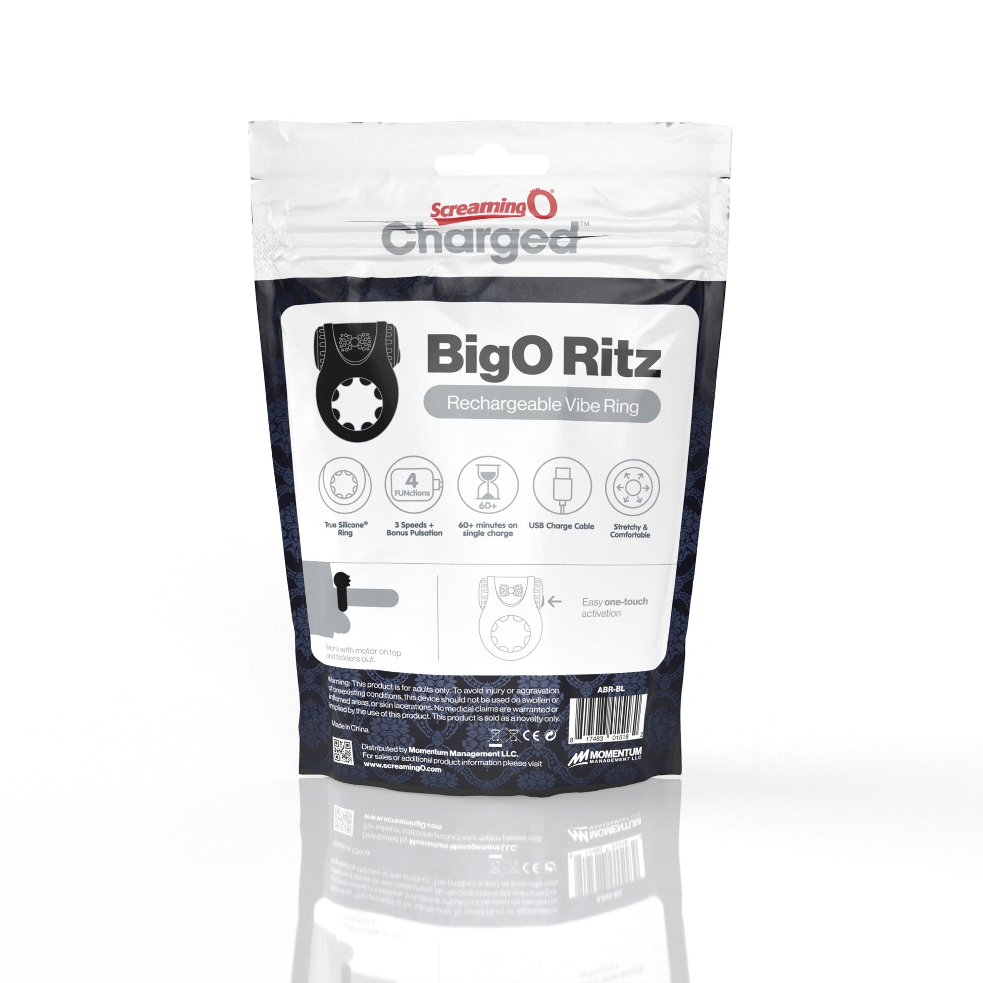 The Screaming O Charged® Big O Ritz Vibrating Ring is perfect for couples and solo play. Made from body-safe silicone and ABS, it is phthalates and latex free. Enjoy 60 minutes of pleasure with its three speeds and pulsation settings on a single charge. Get the most out of your playtime with this rechargeable vibrating cock ring.